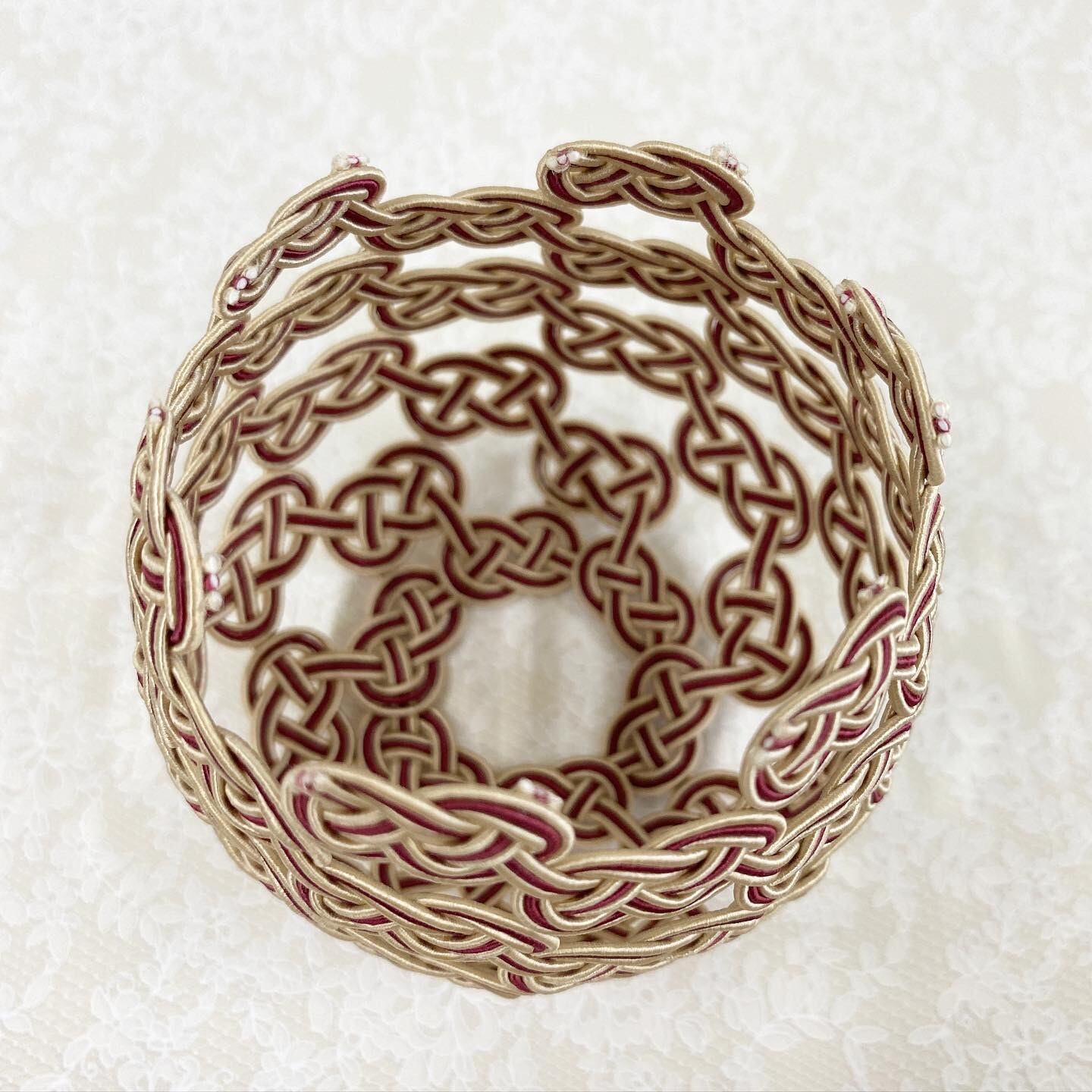 伊予水引で手作りされた水引コモノ【カゴ】は、和の温かみとモダンなデザインが融合した小物入れです。