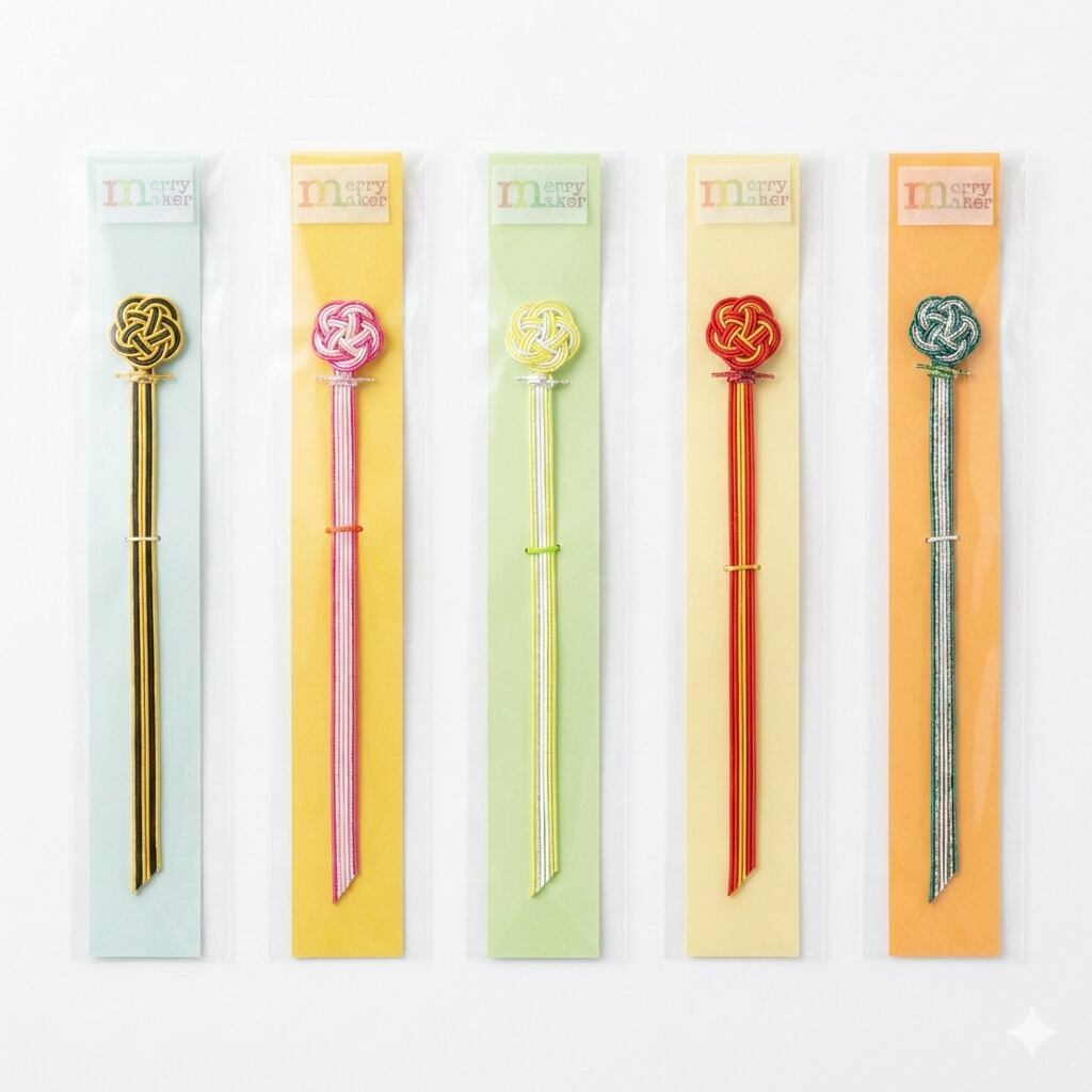 水引の美しさが際立つ、個性的なしおりです。